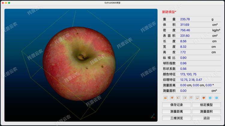 果實三維表型分析系統(tǒng)各種水果或果實,蘋果、梨子、桃、香蕉、石榴、馬鈴薯、洋蔥、南瓜、紅薯、櫻桃、荔枝等;